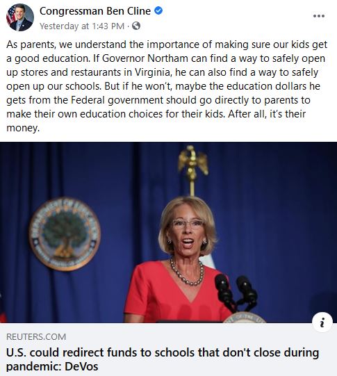 Another bizarre and out-of-touch Facebook post from Congressman Cline.