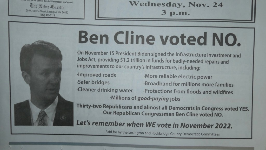 In an interview with WSLS TV, Congressman Cline blamed the current worker shortage on vaccine mandates.