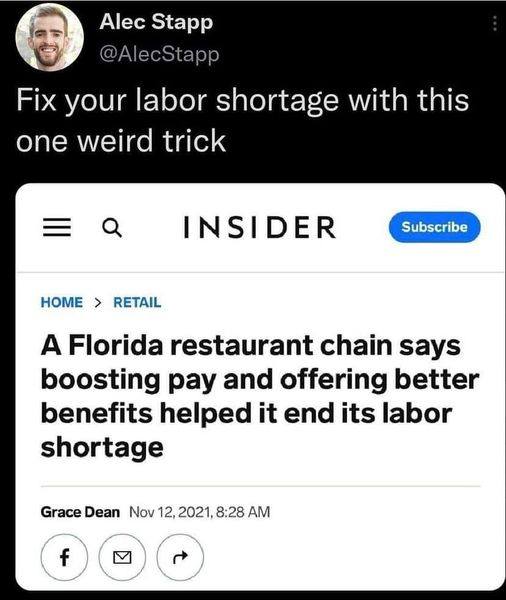 The real solution to labor shortages– along with wider access to child care— may shock Cline and others with such contempt for low-wage workers.