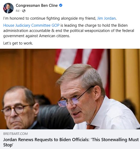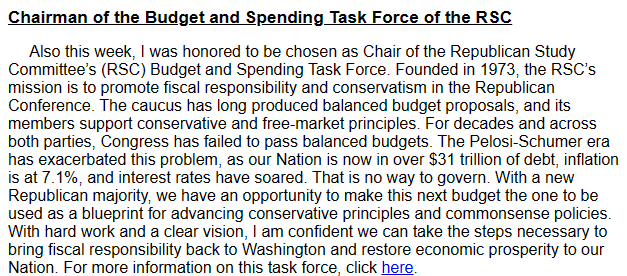 Congressman Cline seems awfully proud to be selected to chair the Republican Study Committee’s Budget and Spending Task Force.