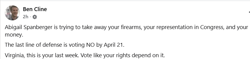 Gov. Spanberger is not trying to take away firearms from anyone who legally possesses them. (Details here.)
